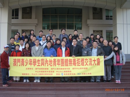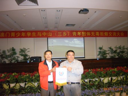 當(dāng)日下午,在三鄉(xiāng)鎮(zhèn)政府舉行的兩地青年團(tuán)體無(wú)毒拒煙交流大會(huì)上,市僑青委副會(huì)長(zhǎng)曹金祥、市僑青委副會(huì)長(zhǎng)兼秘書長(zhǎng)梁冠宇、三鄉(xiāng)鎮(zhèn)團(tuán)委書記簡(jiǎn)偉波、澳門中山青協(xié)主席方錫源、澳門戒煙保健會(huì)理事長(zhǎng)歐家輝、澳門中山三鄉(xiāng)同鄉(xiāng)聯(lián)誼會(huì)副理事長(zhǎng)嚴(yán)家禧等主持了啟動(dòng)儀式,并相互致送了紀(jì)念品。