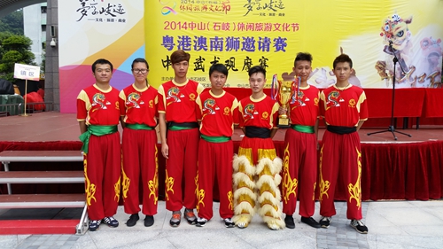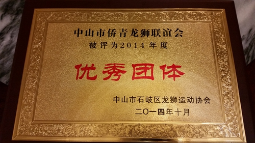 本次比賽由劉廣雄會長親自帶隊參加,由于組織得力,表現(xiàn)突出,賽后,中山市僑青龍獅聯(lián)誼會被評為2014年度“優(yōu)秀團體”稱號。