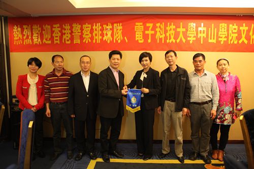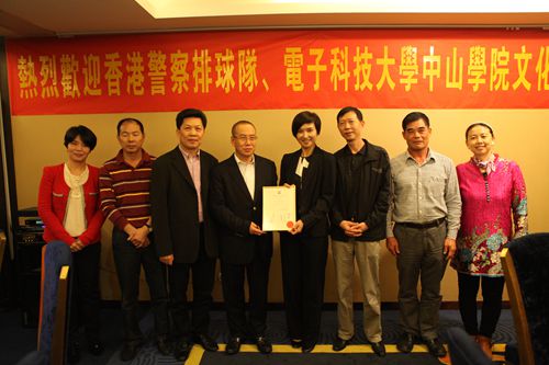 下午14:00,香港警察排球隊與電子科技大學中山學院的排球友誼賽拉開序幕。剛剛抵達中山的香港警務處高級警司關翠貞女士與中山市副市長兼公安局局長譚培安先生、香港中西區(qū)區(qū)議會胡楚南主席等親至賽場觀賽、助威。期間,關翠貞警司及譚培安副市長進行了對話、交流,并探討了人力資源晉升等問題。