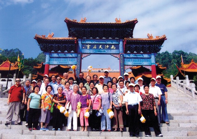 圖為2008年下旬,該會組織僑友位到南海天后宮、東莞一日游動時,部分僑友在南海天后宮的合影。此次活動共有94位僑友及部分家屬參加,僑友們既開闊了眼界又玩得盡興。