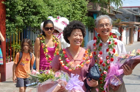 07年6月26日,沙溪鎮(zhèn)龍頭環(huán)村旅美鄉(xiāng)親王達(dá)雄一家三代人回鄉(xiāng),尋找先輩的歷程,觀看王華錦家庭信托會(huì)捐建家鄉(xiāng)文化教育的成果。