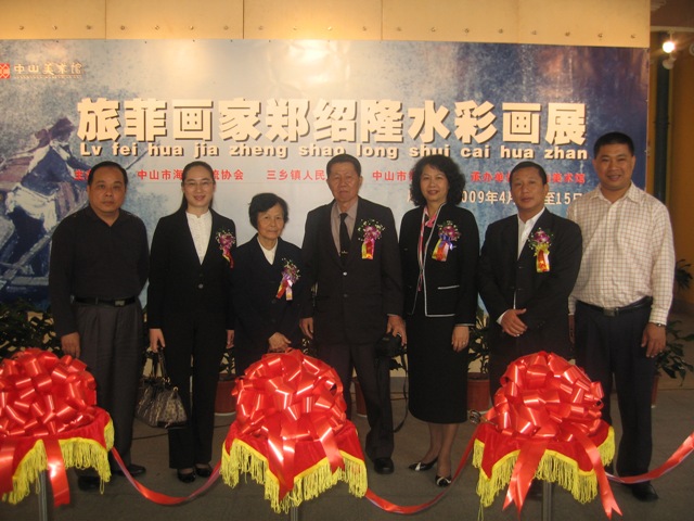 4月8日上午,祖籍三鄉(xiāng)鎮(zhèn)烏石村的旅菲華僑、中科院院士鄭守儀的弟弟鄭紹隆先生,首次在家鄉(xiāng)中山市美術館展示其個人水彩畫作品展。這次畫展展出的40幅色彩明快的清雅山水畫向家鄉(xiāng)人民展示了祖國的秀美河山。這次畫展為期7天,將更好地豐富中山市民的業(yè)余文化生活。中山市副市長韓澤生、市政府副秘書長鄭向榮、中科院院士鄭守儀、市外事僑務局局長高銀嬌、副局長趙錫雄以及市文聯(lián)、市博物館負責人和副鎮(zhèn)長陸潔強、黨委委員鄭雪英以及鎮(zhèn)僑聯(lián)負責人等出席了開幕儀式。