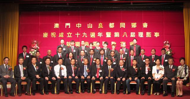 澳門中山良都同鄉(xiāng)會成立十九周年暨第八屆理監(jiān)事就典禮聯(lián)歡宴會合影