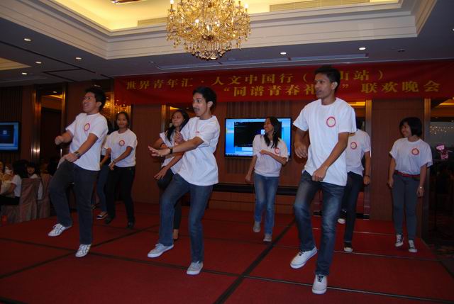 當(dāng)日,在活動開展的“世界青年論壇”,來自世界各地,在暨南大學(xué)、華南理工大學(xué)、華南師范大學(xué)、華南農(nóng)業(yè)大學(xué)等學(xué)習(xí)的外國青年學(xué)子們還以“全球視野與人文中國”發(fā)表演講,暢談自己對中國和中國文化的了解,以及自己所在國與中國建交發(fā)展的感想。在“同譜青春禮贊”晚宴上,不同膚色、不同語言的青年學(xué)子們歡聚一堂,表演了各具特色的精彩文藝節(jié)目,共同為青春理想載歌載舞。