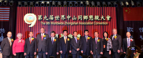 8月26日上午,由美國陽和總會(huì)館主辦的第九屆世界中山同鄉(xiāng)懇親大會(huì)在舊金山隆重開幕,中國駐舊金山總領(lǐng)事高占生,廣東省僑辦主任吳銳成,中山市委副書記、市長陳茂輝,美國屋倫市市長關(guān)麗珍、柏林甘市市長Jerry Deal,苗必爾市市長Marge Colapietro,聯(lián)合城市市長Mark Green、陽和總會(huì)館主席馬金權(quán)等出席開幕式并致辭,三藩市市長李孟賢出席了聯(lián)歡晚宴。來自世界16個(gè)國家和地區(qū)的40個(gè)社團(tuán)近千名海外中山鄉(xiāng)親齊聚一堂,敘鄉(xiāng)誼,談發(fā)展。市僑聯(lián)主席余志勇率領(lǐng)由僑青企業(yè)家和歸僑僑眷組成的民間代表團(tuán)一行17人參加了盛會(huì)。