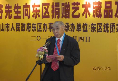 2012年11月4日上午,中山市人民政府東區(qū)辦事處在東區(qū)文化藝術(shù)活動(dòng)中心隆重舉辦“陳香歸故里,善舉寄鄉(xiāng)情——旅港鄉(xiāng)親林芬先生向東區(qū)辦事處捐贈(zèng)藝術(shù)藏品及教育基金儀式”。市委常委、統(tǒng)戰(zhàn)部部長梁麗嫻,政協(xié)副主席韓澤生以及市有關(guān)部門領(lǐng)導(dǎo),東區(qū)社會(huì)各界人士100多人出席了捐贈(zèng)儀式,市僑聯(lián)主席余志勇率僑聯(lián)聯(lián)絡(luò)經(jīng)濟(jì)部干部出席了活動(dòng)。