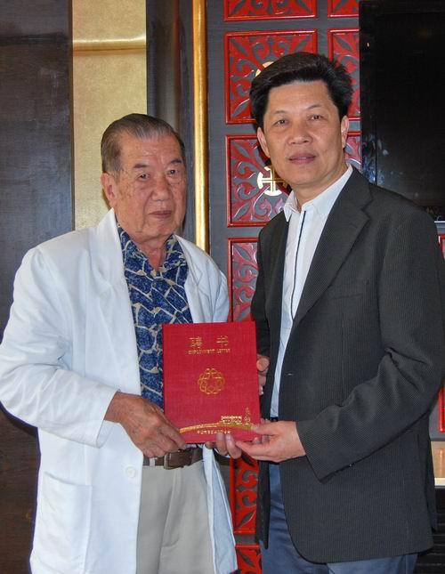 余志勇主席代表市僑聯(lián)第十三屆委員會向梁德仁致送顧問聘書