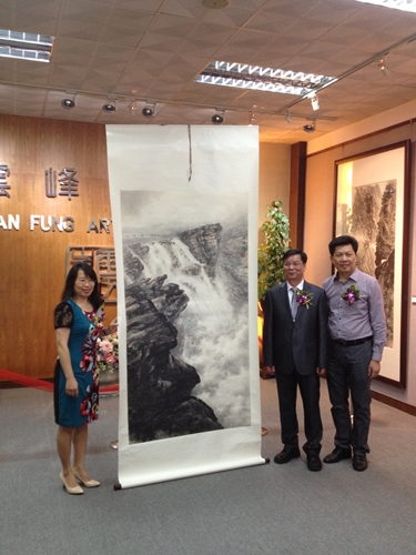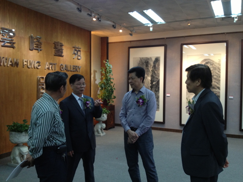 11月2日,由中山市歸國華僑聯(lián)合會、中山市文學(xué)藝術(shù)界聯(lián)合會、中山市博物館、中山市美術(shù)家協(xié)會共同主辦的“林再圓山水畫精品展”在南區(qū)云峰畫苑順利開幕。市僑聯(lián)余志勇主席,楊彪副主席出席開幕典禮。余志勇主席代表主辦單位和林再圓先生一起贈送作品給市檔案館收藏。