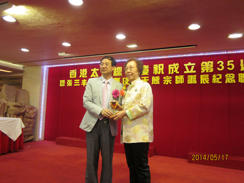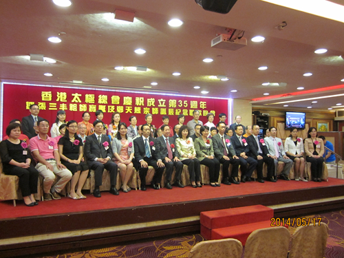 2014年5月17日晚上香港太極總會假座旺角倫敦大酒樓慶祝成立35周年暨張三豐祖師寶誕及鄭天熊宗師誕辰紀念聯歡晚會,中山市僑聯楊彪副主席及部門負責人隨中山市祝賀團到會祝賀。