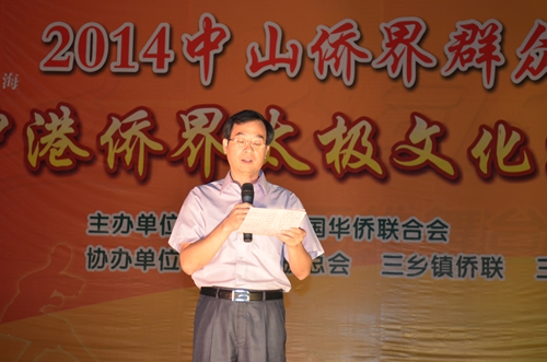 10月26日,中港僑界太極文化巡演活動在西區(qū)、三鄉(xiāng)隆重舉行。這是由市僑聯(lián)主辦的2014中山僑界群眾文化節(jié)的其中一項(xiàng)活動。市僑聯(lián)主席余志勇、調(diào)研員賈東風(fēng)、副主席楊彪、三鄉(xiāng)鎮(zhèn)黨委委員鄭雪英、西區(qū)僑聯(lián)副主席高小紅等觀看了巡演。來自中山、香港兩地的太極愛好者共300多人共同參與了巡演。