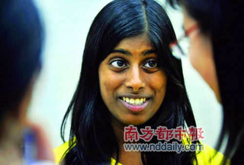 Nishna是夏令營中極少數的非華裔營員之一,她祖籍印度,跟隨夏令營第一次來中國。雖然是第一次來中國,但對于中國,她并不陌生。她們所在的區(qū)域,亞洲人比較多,當然也有很多的華裔。所以她對中國人的生活習慣以及飲食都不陌生。只是,Nishna不會說中文,所以在中山家庭中留宿的時候,他們溝通得并不十分順利。不過好在生活上的英文都比較簡單,跟結對的中國女孩子交流還算不錯,家里的其他成員就可以靠肢體交流。