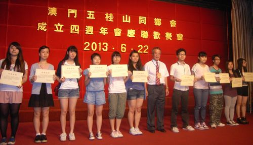 澳門中山五桂山同鄉(xiāng)會(huì)楊玉初會(huì)長(zhǎng)向成績(jī)優(yōu)異的會(huì)員子弟頒發(fā)獎(jiǎng)助學(xué)金