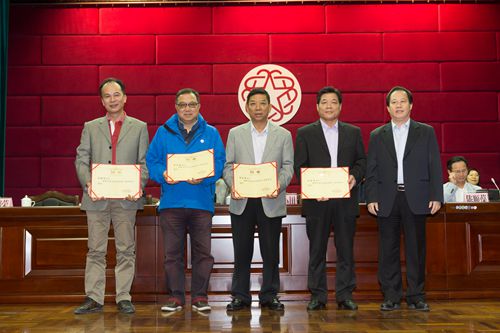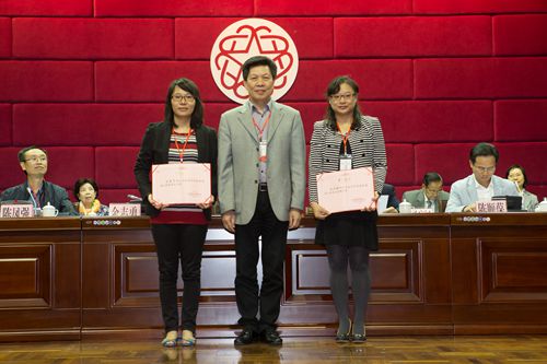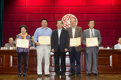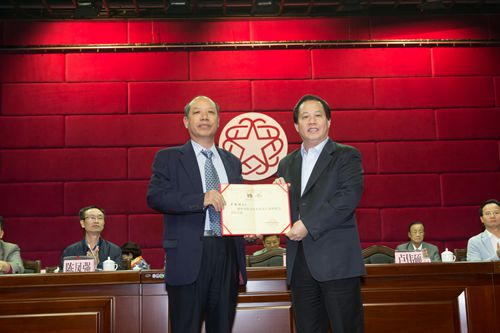 周小川書(shū)記(右)向盧偉碩(左)頒發(fā)名譽(yù)主席聘書(shū)。