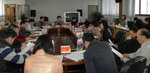 常委們在認真學習“九代會”工作報告。