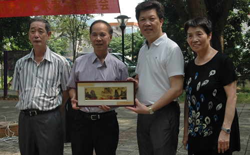 市僑聯(lián)調(diào)研員賈東風向市老年書畫研究會致送紀念品。
