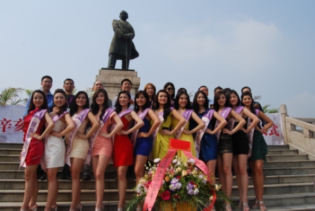 華裔小姐們向?qū)O中山銅像敬獻(xiàn)花籃后合影留念。