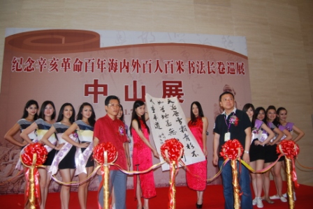 華裔小姐們在書法長卷中山展活動上展示形象。