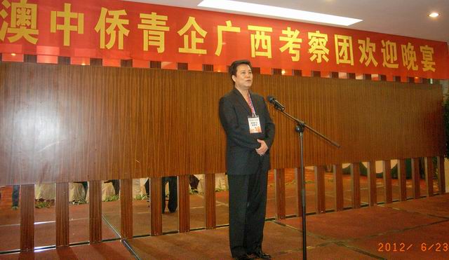 6月23-25日,由澳門中山青年協(xié)會、中山市僑青委主辦的“同飲一江水,同心八桂行”澳中僑青企業(yè)廣西考察團(tuán)一行30余人,在澳門中山青年協(xié)會會員大會主席胡家儀、中山市僑聯(lián)主席兼市僑青委會長余志勇、澳門中山青年協(xié)會主任方錫源、澳門展明地產(chǎn)貿(mào)易公司董事長葉志和的率領(lǐng)下,赴廣西自治區(qū)南寧、百色、平果、崇左、扶綏等地進(jìn)行了為期三天的商務(wù)考察,尋覓投資商機(jī)??疾靾F(tuán)一行受到了廣西自治區(qū)委常委、統(tǒng)戰(zhàn)部部長范曉莉,自治區(qū)政協(xié)副主席蔣培蘭,自治區(qū)僑聯(lián)主席韋干、副主席劉澤祥等的熱情接待。全國政協(xié)常委、澳門廣西社團(tuán)聯(lián)合總會會長何玉棠等參加了有關(guān)行程。