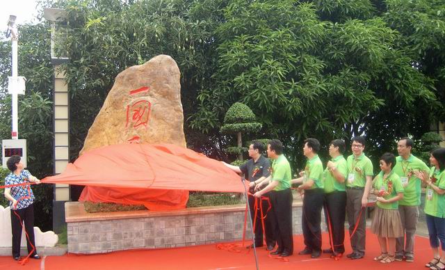全國政協(xié)常委、澳門廣西社團(tuán)聯(lián)合總會會長何玉棠等考察團(tuán)領(lǐng)導(dǎo)為捐贈“一國兩制”鄧小平手跡字碑揭幕