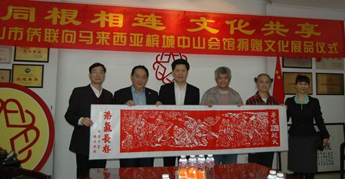 余志勇主席介紹說,圖片展品旨在弘揚革命先驅(qū)的愛國主義精神,加深海外華夏兒女對祖國歷史文明的深入了解;而剪紙展品的作者是中山歸僑,代表了中山僑界群眾對孫中山先生的景仰之情;市僑聯(lián)將兩批展品捐贈給檳城中山會館,還希望通過文化交流的方式與海外中山籍華僑社團及鄉(xiāng)親加強聯(lián)誼往來。譚少鴻會長對市僑聯(lián)的捐贈致以感謝,他表示,這兩批文化展品將對中山文化及中山先生的精神在海外的弘揚,以及為馬來西亞、中山兩地文化交流起到積極的作用。