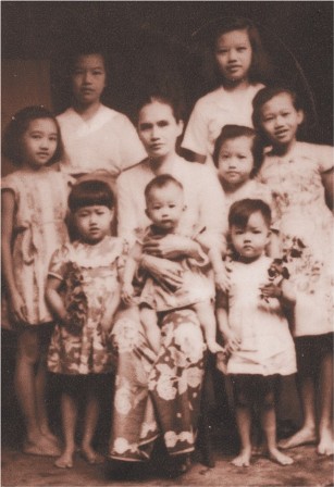 花姐年幼時(shí)在印尼與母親及姐姐們合影